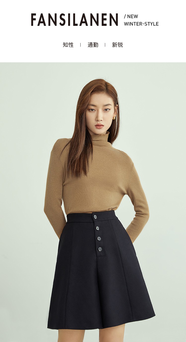商品名称:范思蓝恩 2020秋冬新款A字型裤子女高腰阔腿裤显瘦外穿短裤 黑色 L