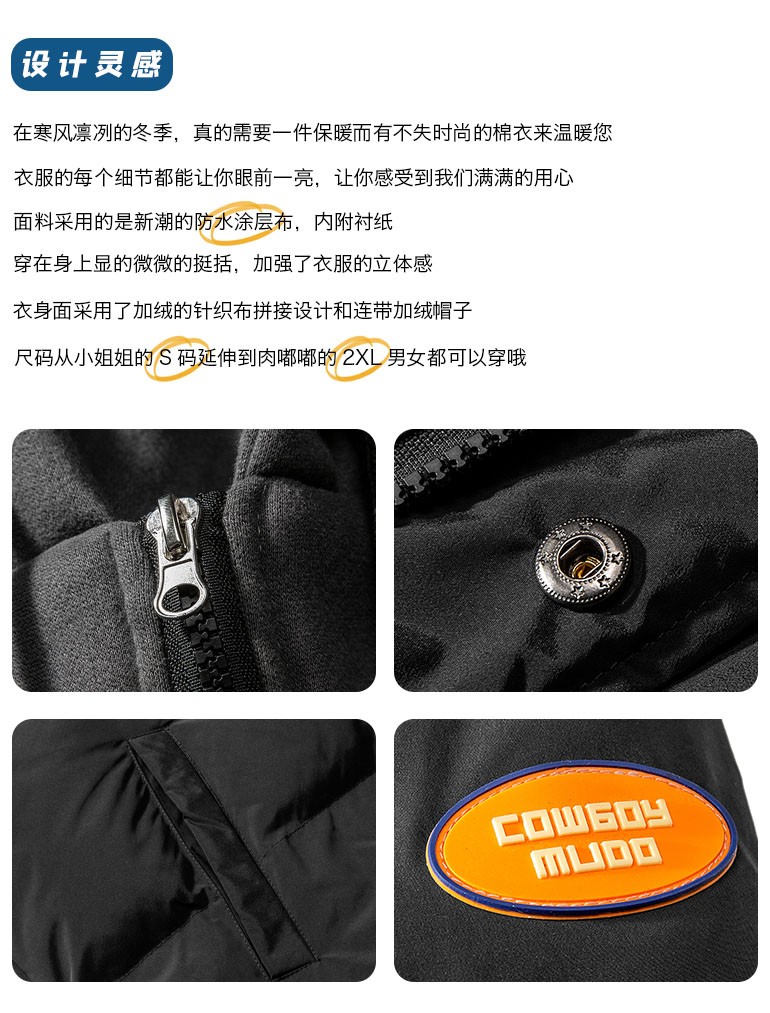 商品名称:简艾伦 棉服男士外套冬季2020新款假两件连帽工装加厚百搭棉服潮流冬装潮牌棉袄中长款加厚保暖情侣风衣