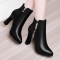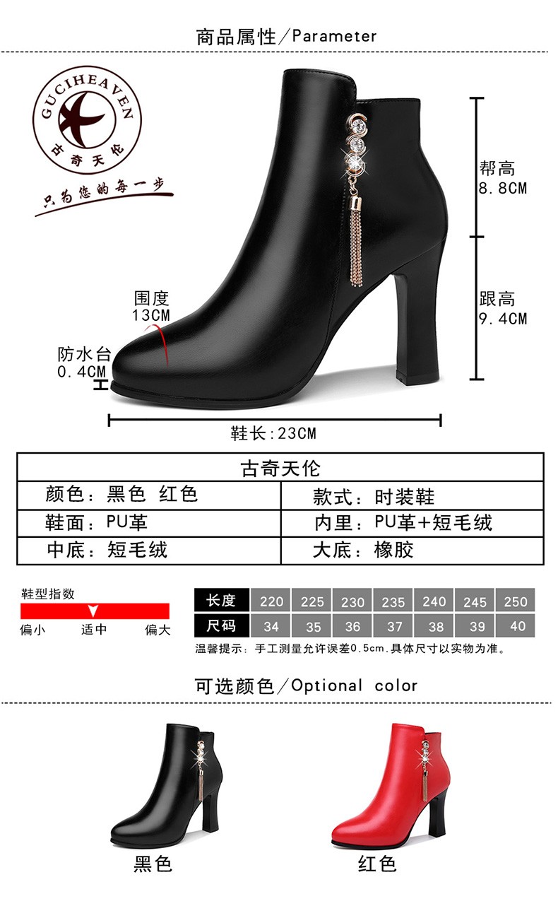 商品名称:高跟女鞋2020秋冬新款尖头粗跟女靴加绒保暖棉皮鞋侧拉链短靴防水台增高大红色结婚鞋子女