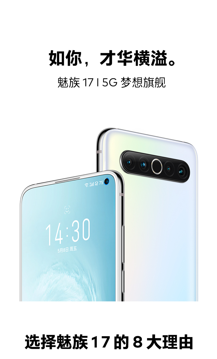 商品名称:魅族17 8GB+128GB AG 梦幻独角兽 骁龙865 旗舰5G手机 30W快充 6400W后置主摄 90Hz屏幕 支持NFC 游戏手机