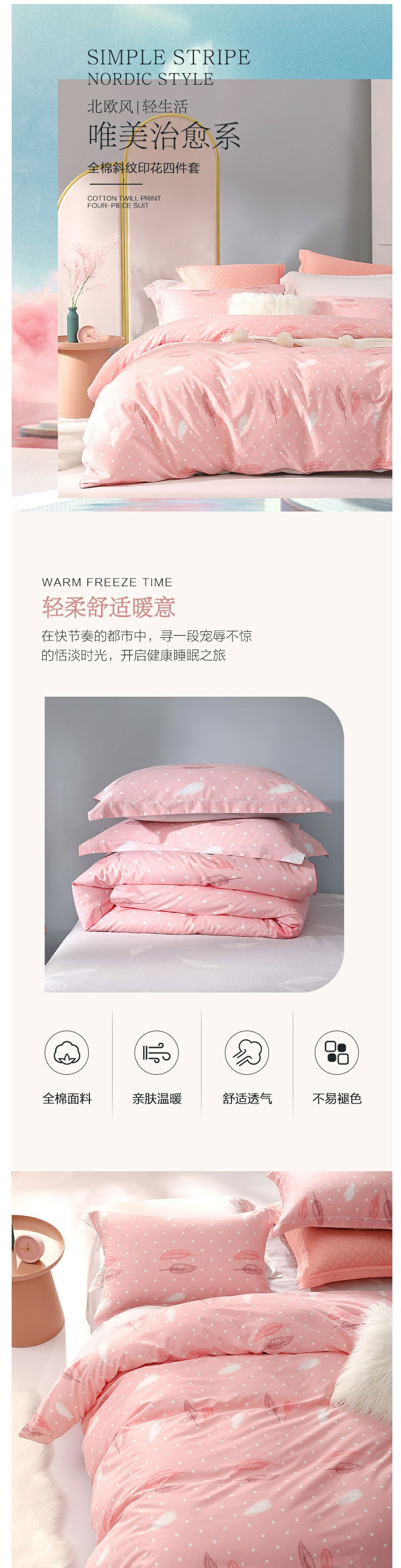 商品名称:水星家纺 床上四件套纯棉 全棉斜纹床品套件 简约被套床单被罩 倾颜倾羽 加大双人1.8米床
