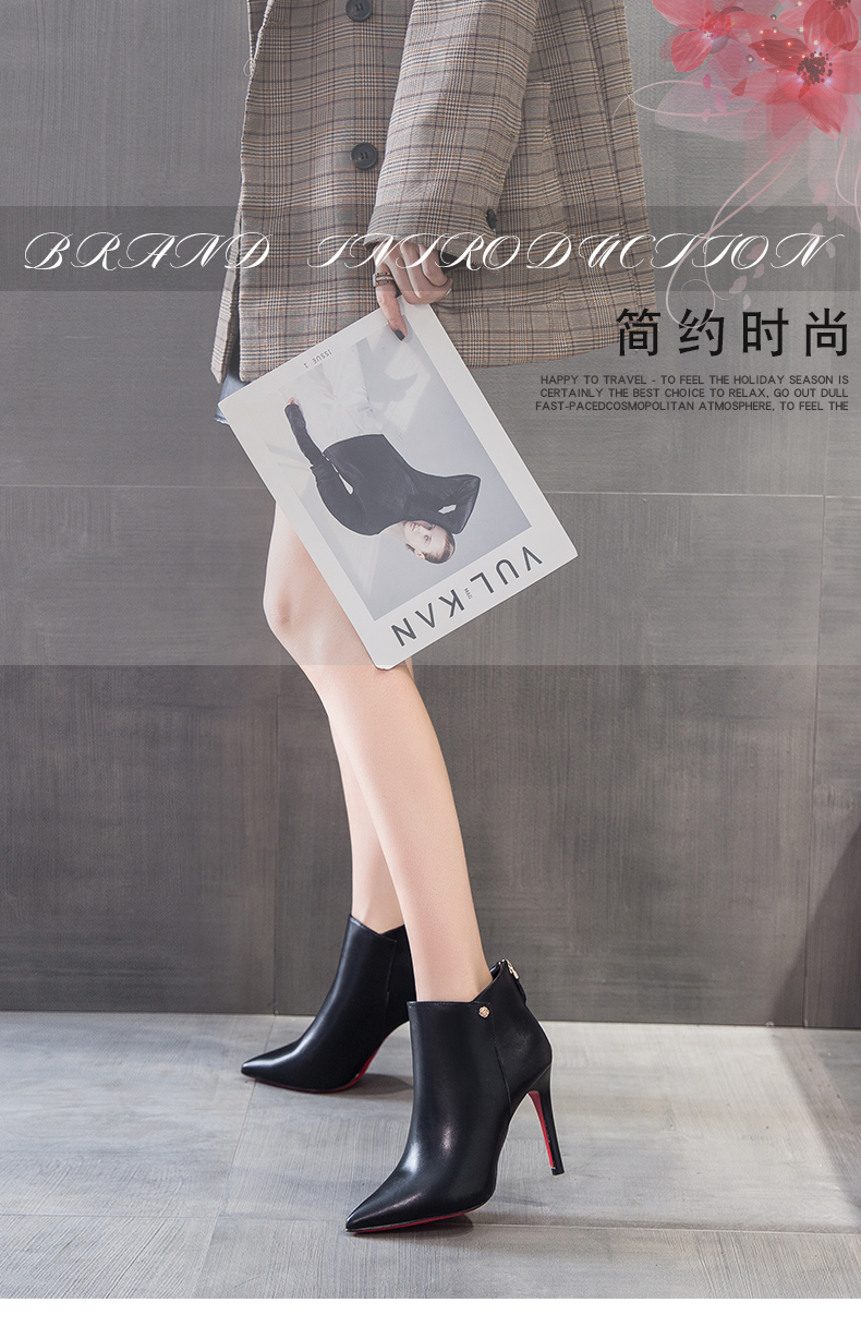 商品名称:诺琎潮牌马丁靴女2020年新款韩版百搭细跟职业高跟鞋秋冬季百搭尖头短靴 米色 36