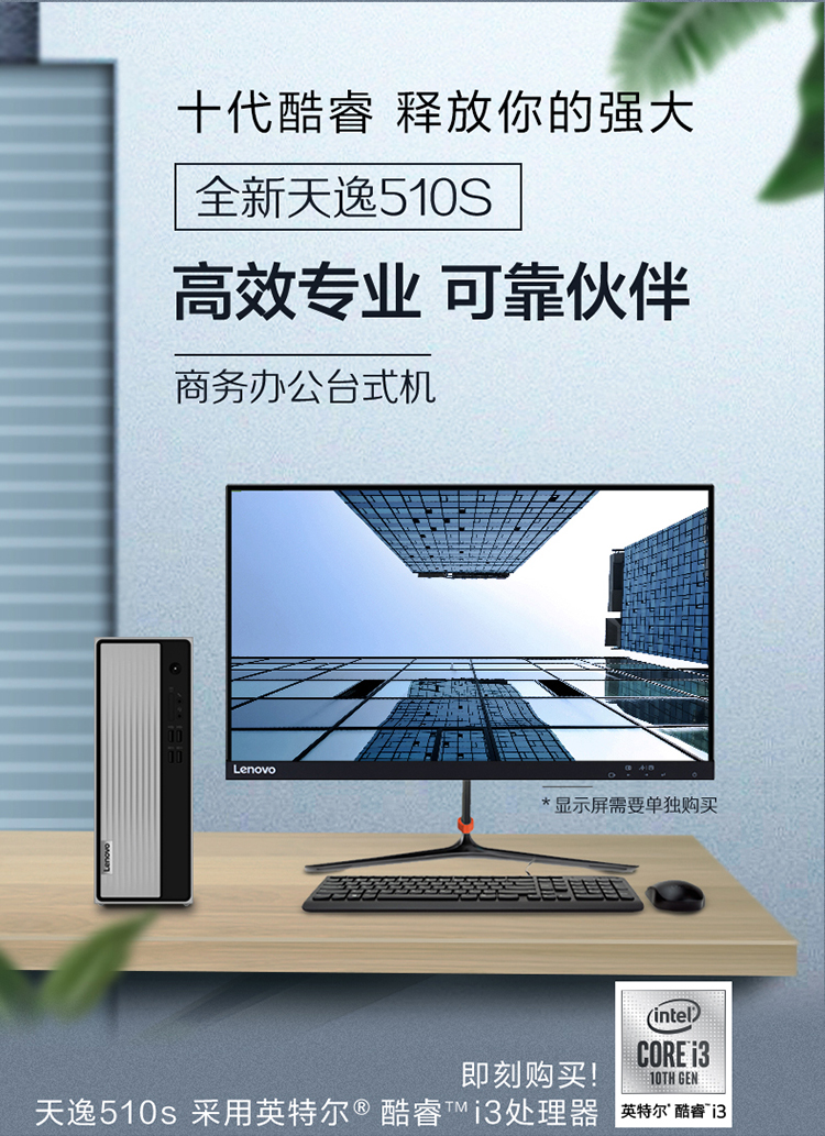 商品名称:联想(Lenovo)天逸510S 十代英特尔酷睿i3 台式机电脑整机(i3-10100 8G 1T wifi win10 三年上门)21.5英寸