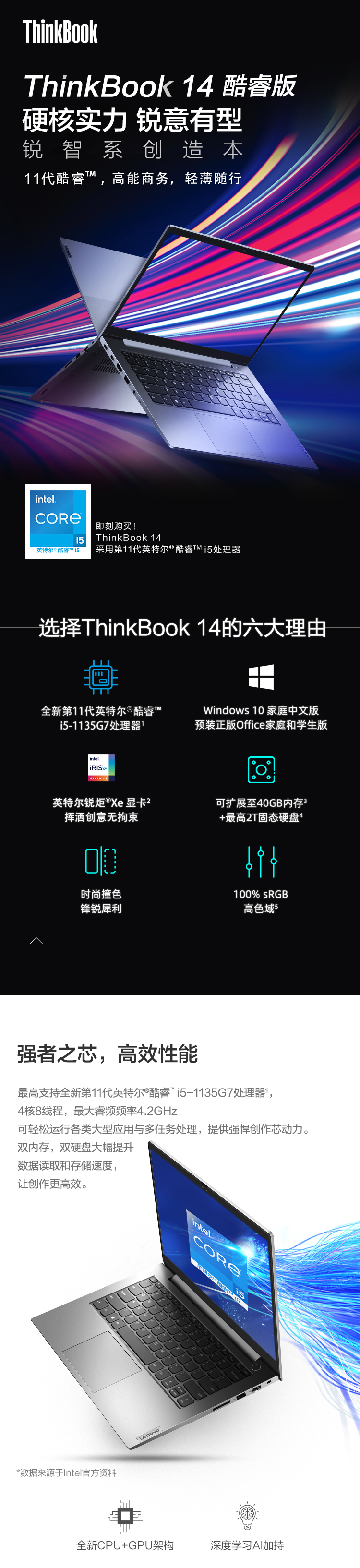 联想ThinkBook 14 2021款 酷睿版 英特尔酷睿i5 14英寸轻薄笔记本(i5-1135G7 16G 512G 锐炬显卡 高色域)